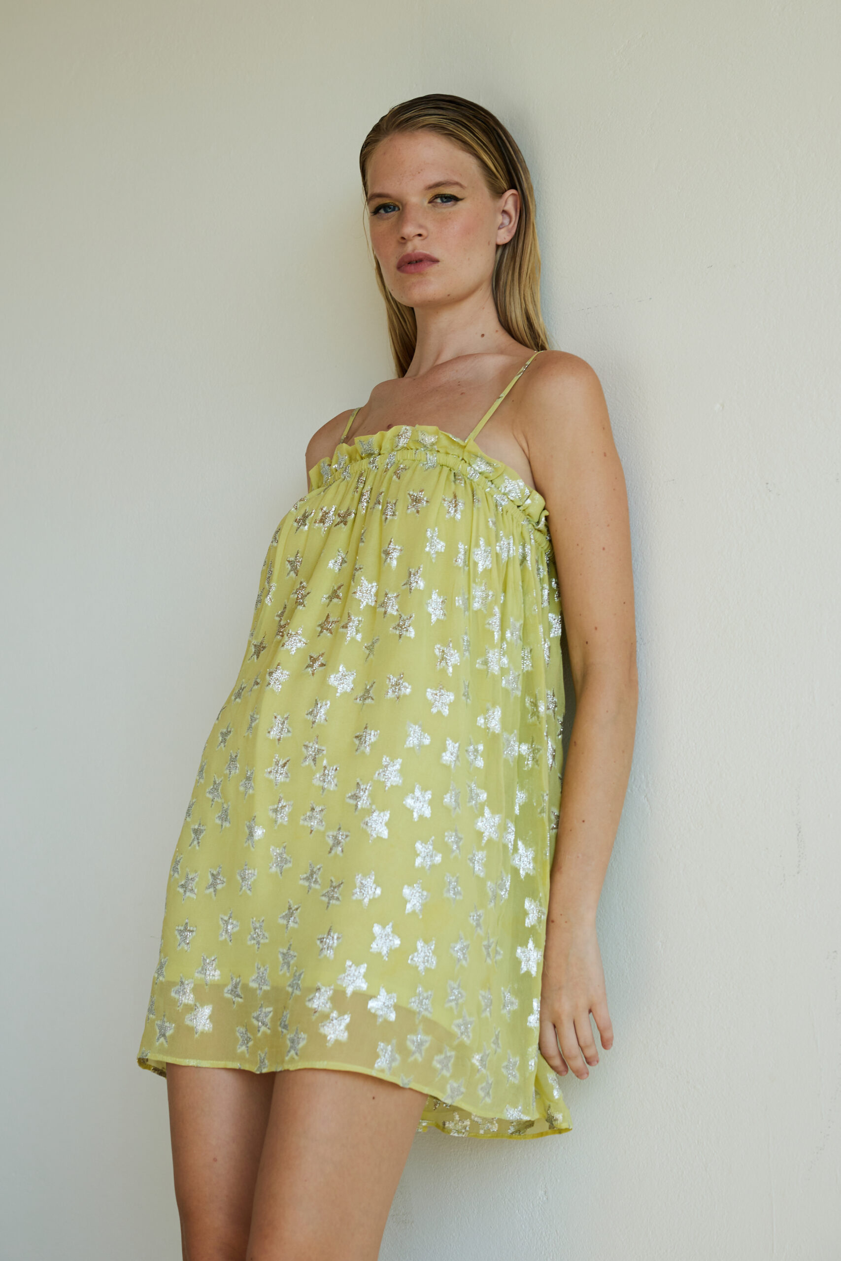 Lime Celeste Star Mini Dress – Sparkle in Every Step