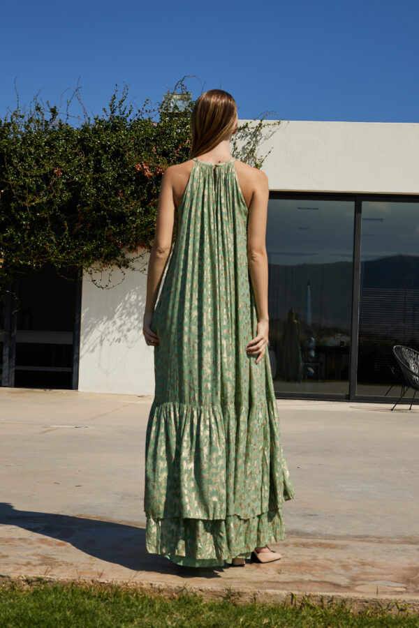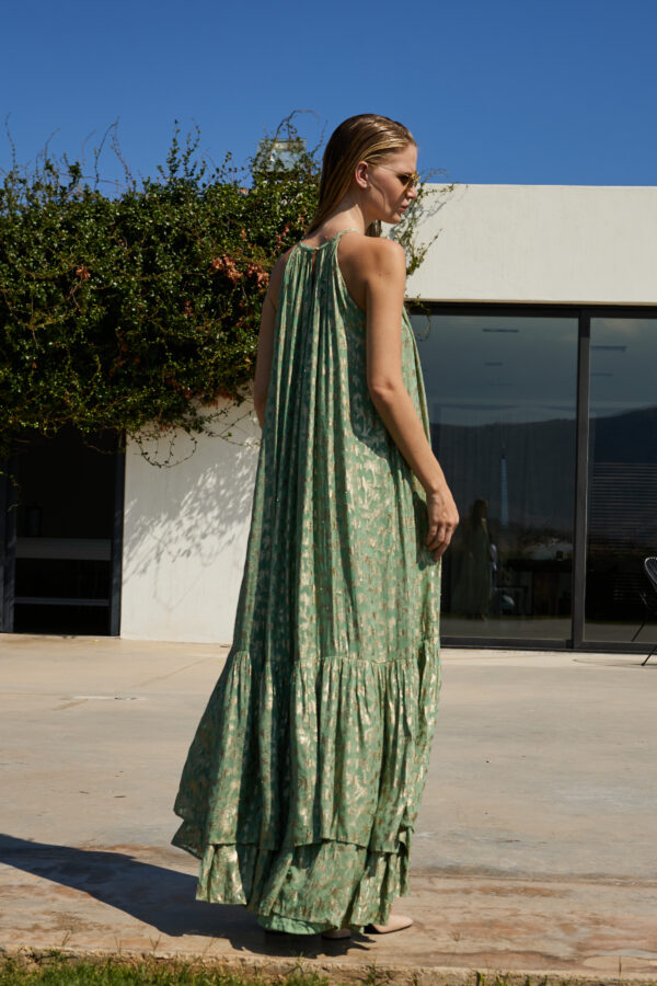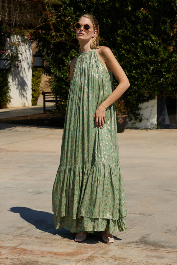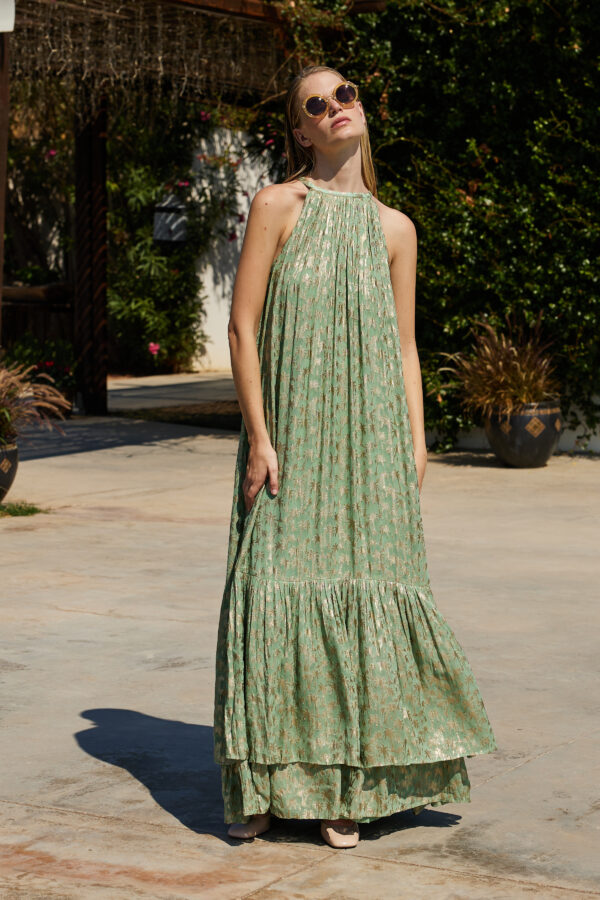 Palm Reverie Maxi Dress – Tropical Elegance Meets Dreamy Detail