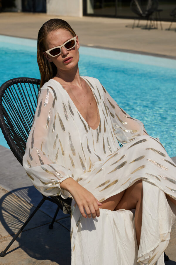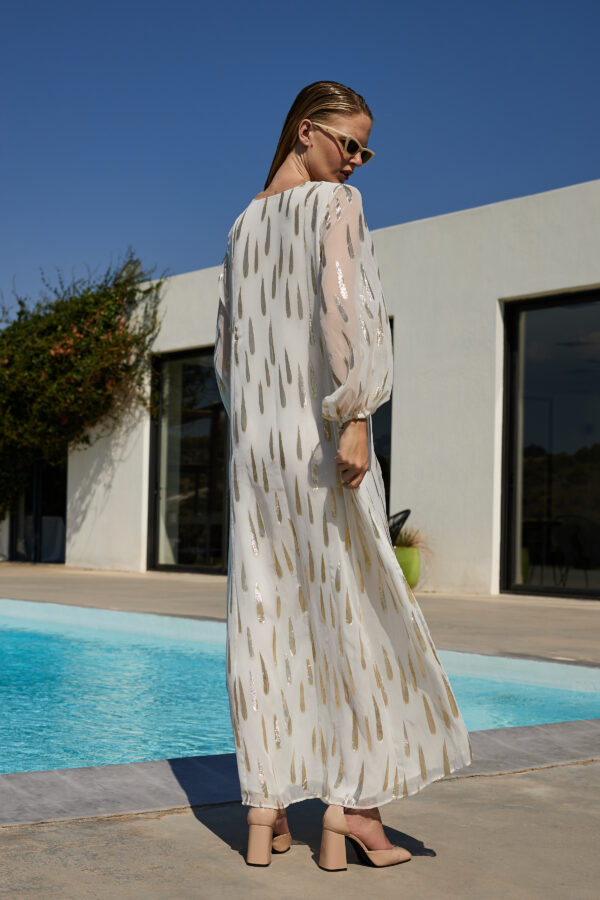 White Drop Metallic Maxi Dress – Radiant Elegance in Motion